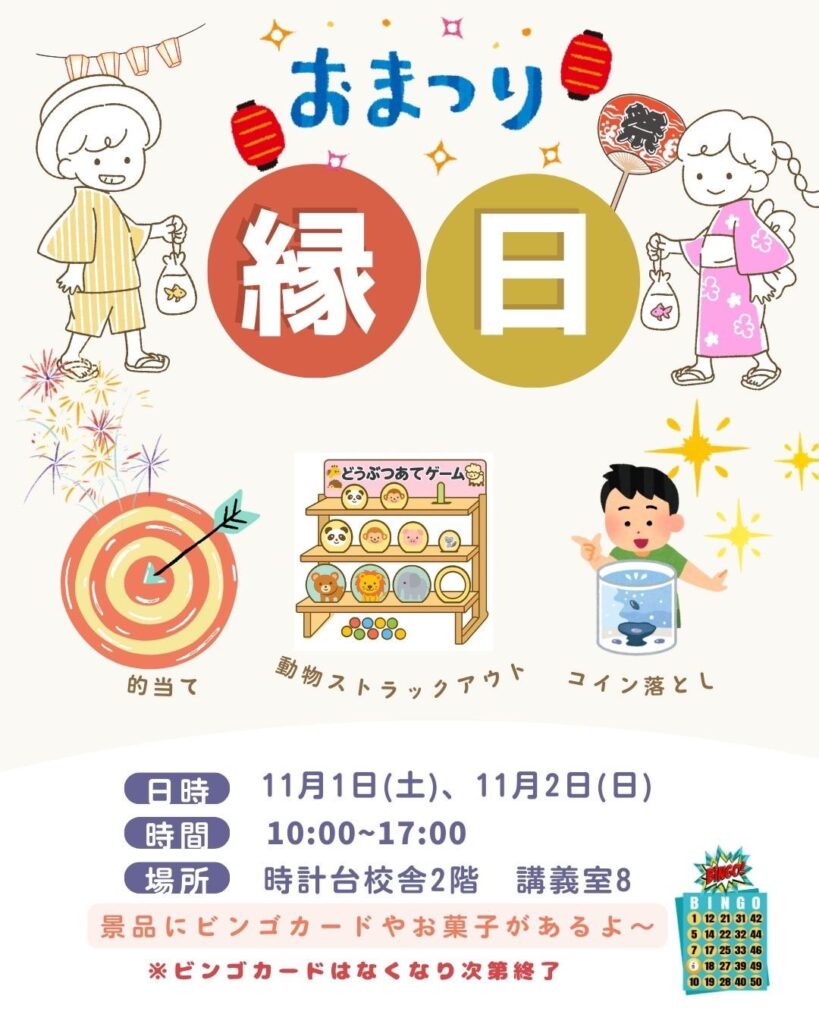 今年の環太祭では、子どもから大人まで楽しめる縁日イベントを開催します! イベントでは、的当てや動物ストラックアウト、コイン落としがあり、誰でも気軽に参加できる定番ゲームが盛りだくさん!お友達やご家族と一緒に挑戦すれば、きっと忘れられない思... -