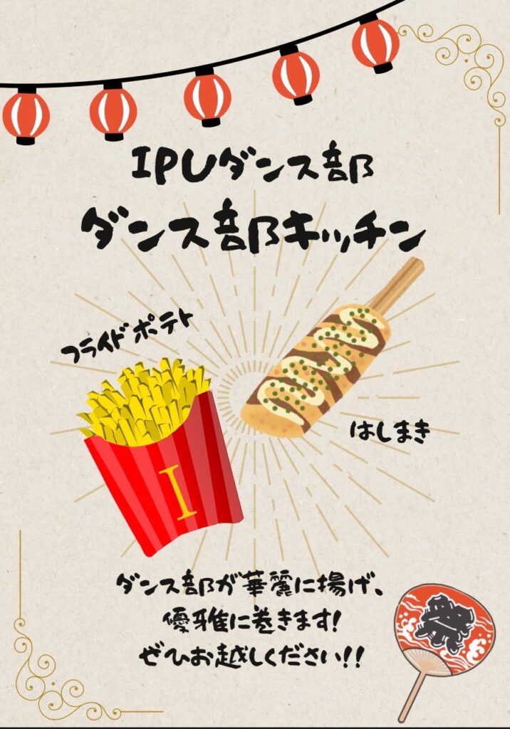 ダンス部が愛情を込めてはしまきとポテトをお届けします!とっても美味しいのでぜひ食べに来てください! 基本情報 商品一覧 はしまき 400円 ポテト 250円 場所 時計台校舎 教育棟前 ④ -