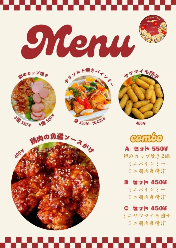 「ベトナムグルメ」へようこそ〜!🥳 ここでは、ベトナムのおいしいものが大集合!🍗 甘じょっぱいタレがやみつき『鶏肉のヌクマムソース』 🌶 ピリ辛がクセになる『バインミー風トースト』🥔 外はカリッ、中はホクホク『サツマイモボール』 🥚 香ばしい『... -