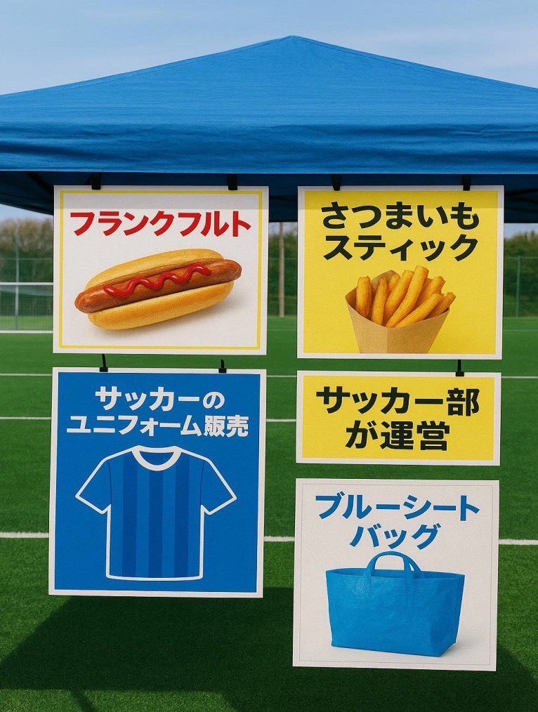 サッカー部です!!どこよりも安くて美味しいフランクフルト売ってます!デザートに甘い甘いサツマイモステックも販売してます!ぜひ食べにきてください! 基本情報 商品一覧 フランクフルト、さつまいもスティック 300円 ユニフォーム販売、ブルーシート...